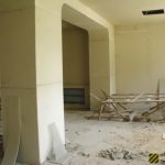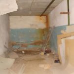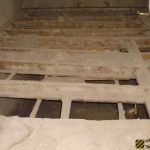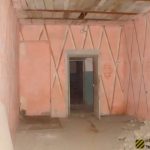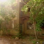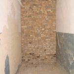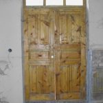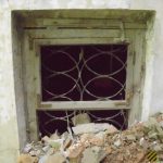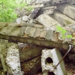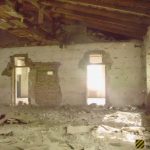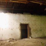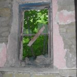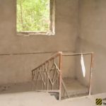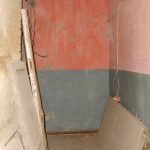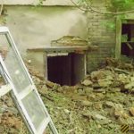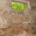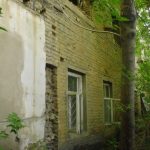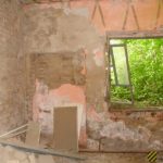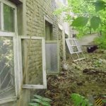 Во внутреннем дворике большое количество кирпичей, оконных рам, балок.