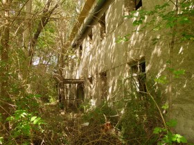 Со стороны улицы вокруг здания много деревьев и старых неубранных веток, которые мешают прямому обзору.