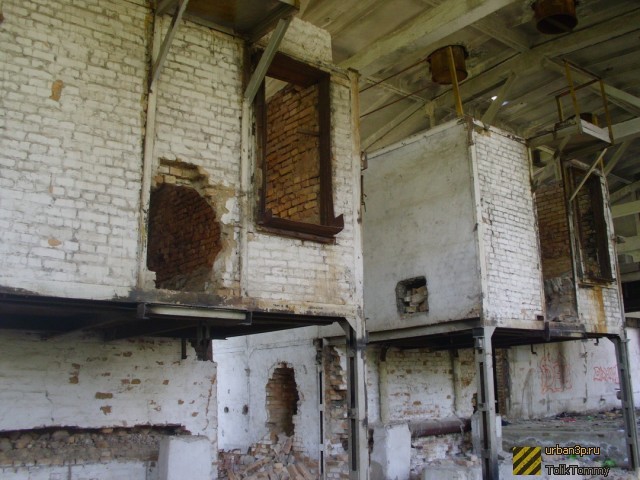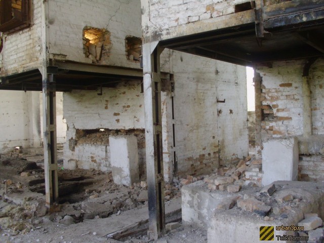 Объект на первом этаже представляет из себя саму котельную. На втором этаже находились система вентиляции и электрооборудование. Кирпичные конструкции в некоторой степени разрушены. В некоторых местах плиты потолка обрушены или представляют угрозу обрушения.