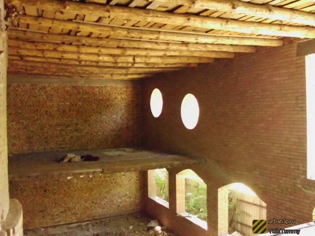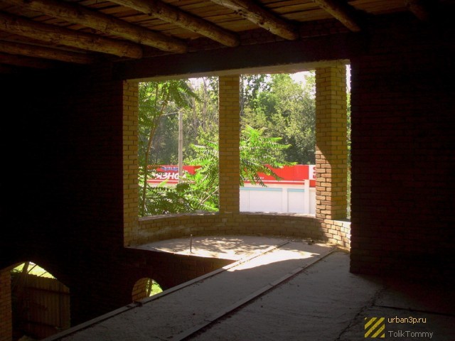 В здании отсутствуют лестницы, что затрудняет подъем на второй этаж. Помимо этого отсутствуют какие-либо строительные материалы. Второй этаж более или менее чист, по сравнению с первым. Опалубка крыши на втором этаже местами прогнулась и представляет некоторую опасность.