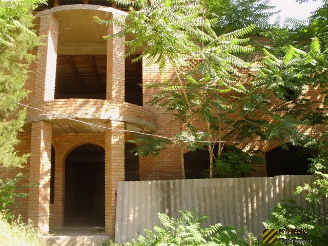 Здание со всех сторон заросло кустарниками и деревьями. Охрана отсутствует и за зданием никто не следит. Видны следы пребывания детворы и бродяг.