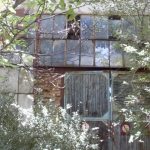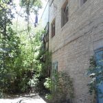 Во внутреннем дворике большое количество кирпичей, оконных рам, балок.